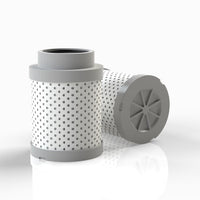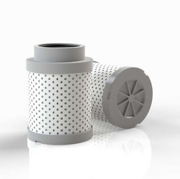 The efficiency of the element is shown using the Micron (µ) and Beta (β) ratings. The micron rating indicates the size of the particle being filtered and the beta rating the efficiency, calculated as 1/β.