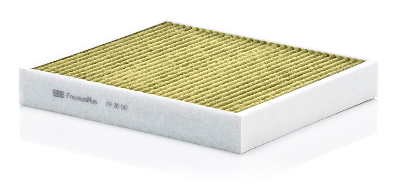 Biofunctional MANN-FILTER FreciousPlus cabin air filters - nearly 100% protection against nitrogen oxides, dust, allergens and mould - harmful gases and unpleasant odours are also eliminated and virus aerosols filtered. The three-layer filter technology absorbs almost 100% of allergens, reduces the growth of molds and bacteria by more than 98% and stops fine dust almost completely.Specification
