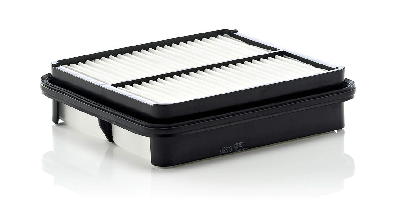 High-quality MANN-FILTER air filters for clean air intake and optimum protection for your engine, mass air flow sensor & other sensitive components / They meet requirements of modern engine technology. Highest dirt holding capacity and dirt separation efficiency, low flow resistance and high pleat stability ensure functional reliability during the entire service interval.