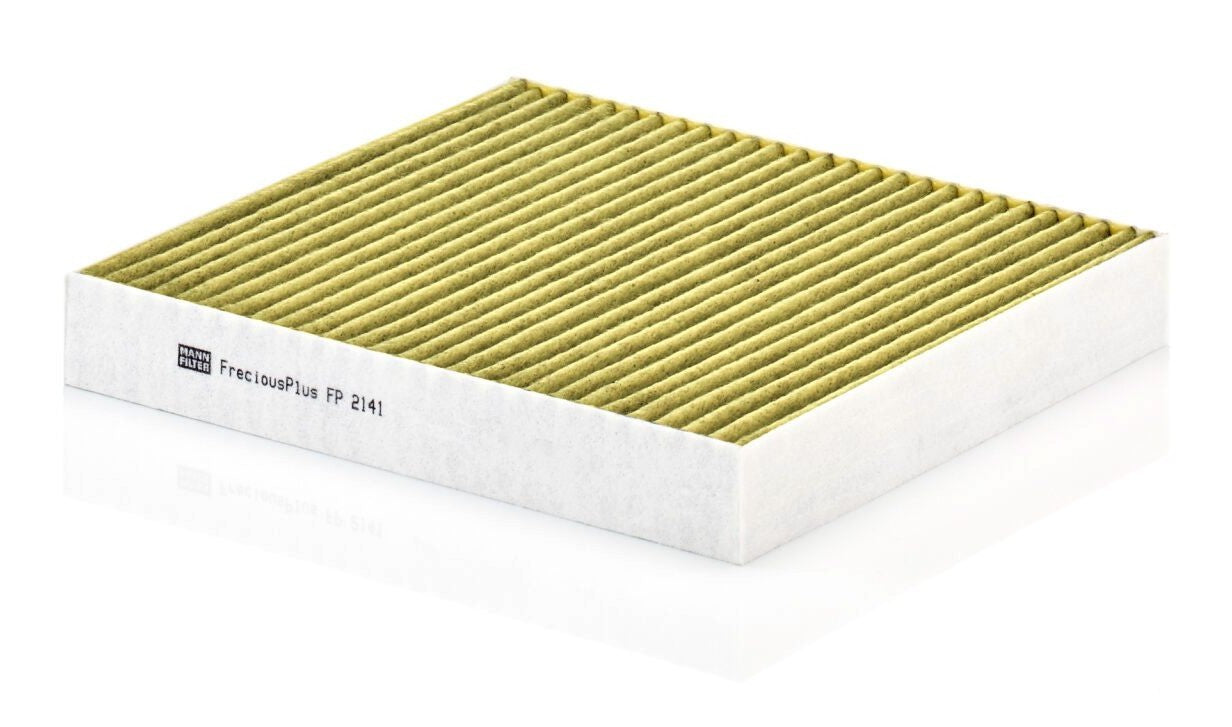 Biofunctional MANN-FILTER FreciousPlus cabin air filters - nearly 100% protection against nitrogen oxides, dust, allergens and mould - harmful gases and unpleasant odours are also eliminated and virus aerosols filtered. The three-layer filter technology absorbs almost 100% of allergens, reduces the growth of molds and bacteria by more than 98% and stops fine dust almost completely.Specification