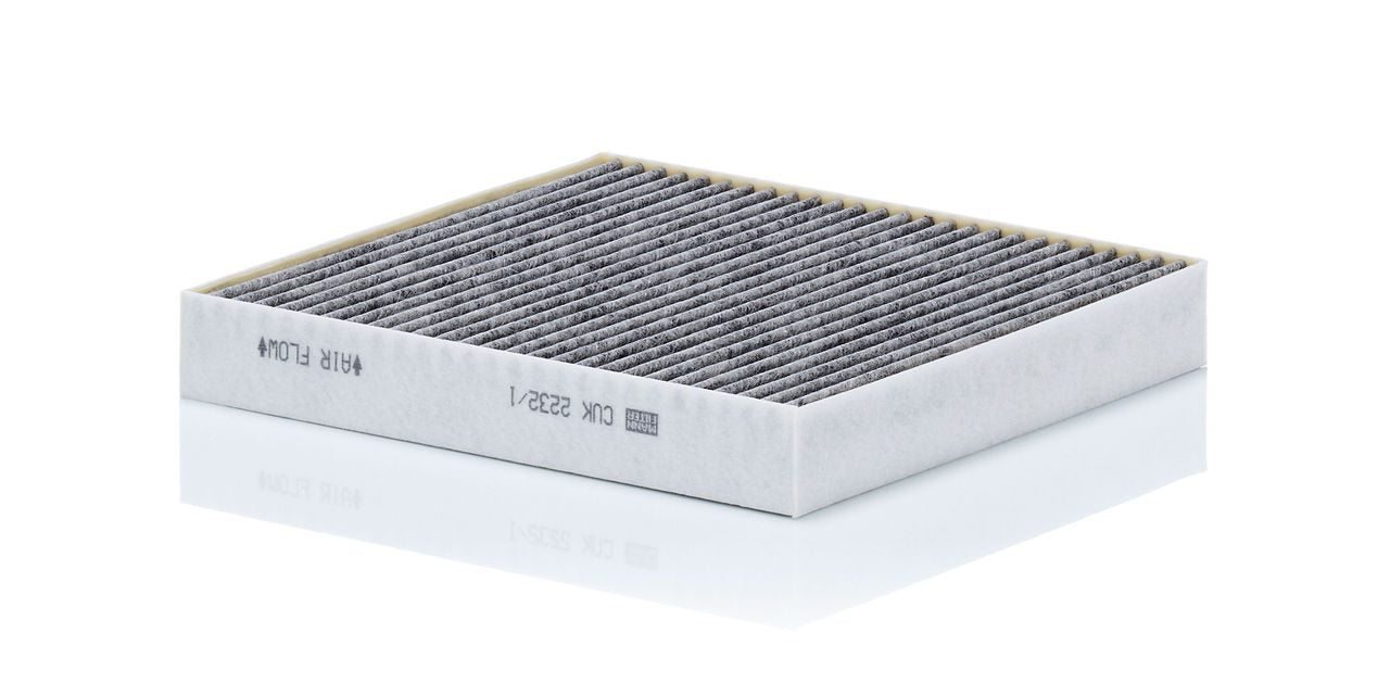 High-quality MANN-FILTER cabin filters with active carbon - nearly 100% protection from particles like pollen, diesel soot & tyre abrasion / Additional protection from harmful gases & unpleasant odour. The trated highly-effective activated carbon gives protection against harmful gases such as ozone, nitrogen oxide or sulphur dioxide and eliminates unpleasant odours during the entire service interval.