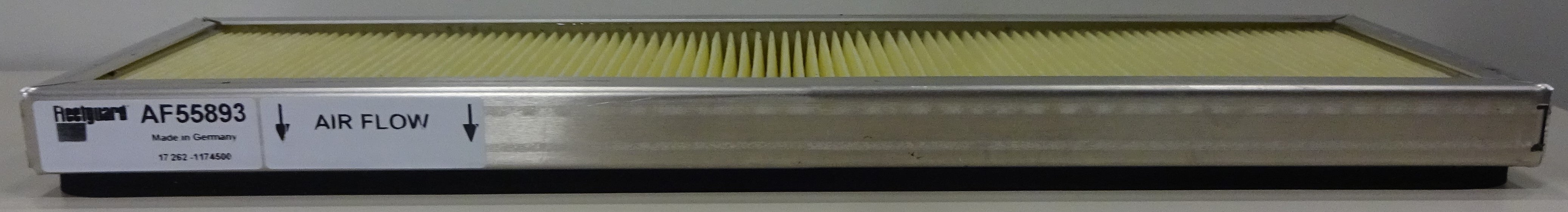 Fleetguard® AF55893 panel cabin air filter provides clean air in the cab which means a clean work environment. Breathing cleaner air can lead to longer and more productive working hours.Specification