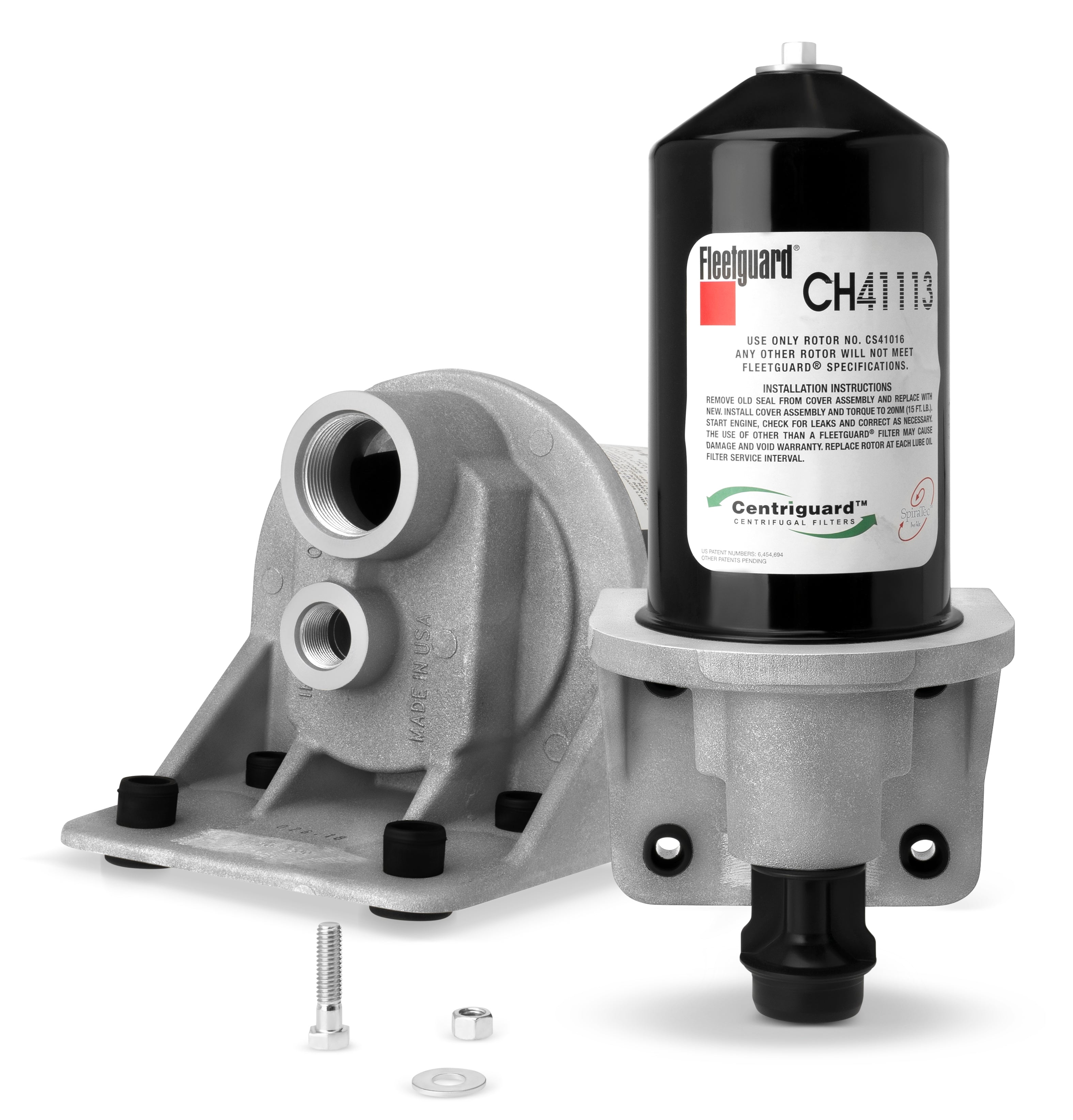 Fleetguard® CH41113 centrifuge by-pass filter housing is part of the centriguard filtration system with technology that meets or exceeds the rigorous specifications of today's low-emissions engines while providing increased engine life and performance, easier maintenance and minimal environment impact.Specification
