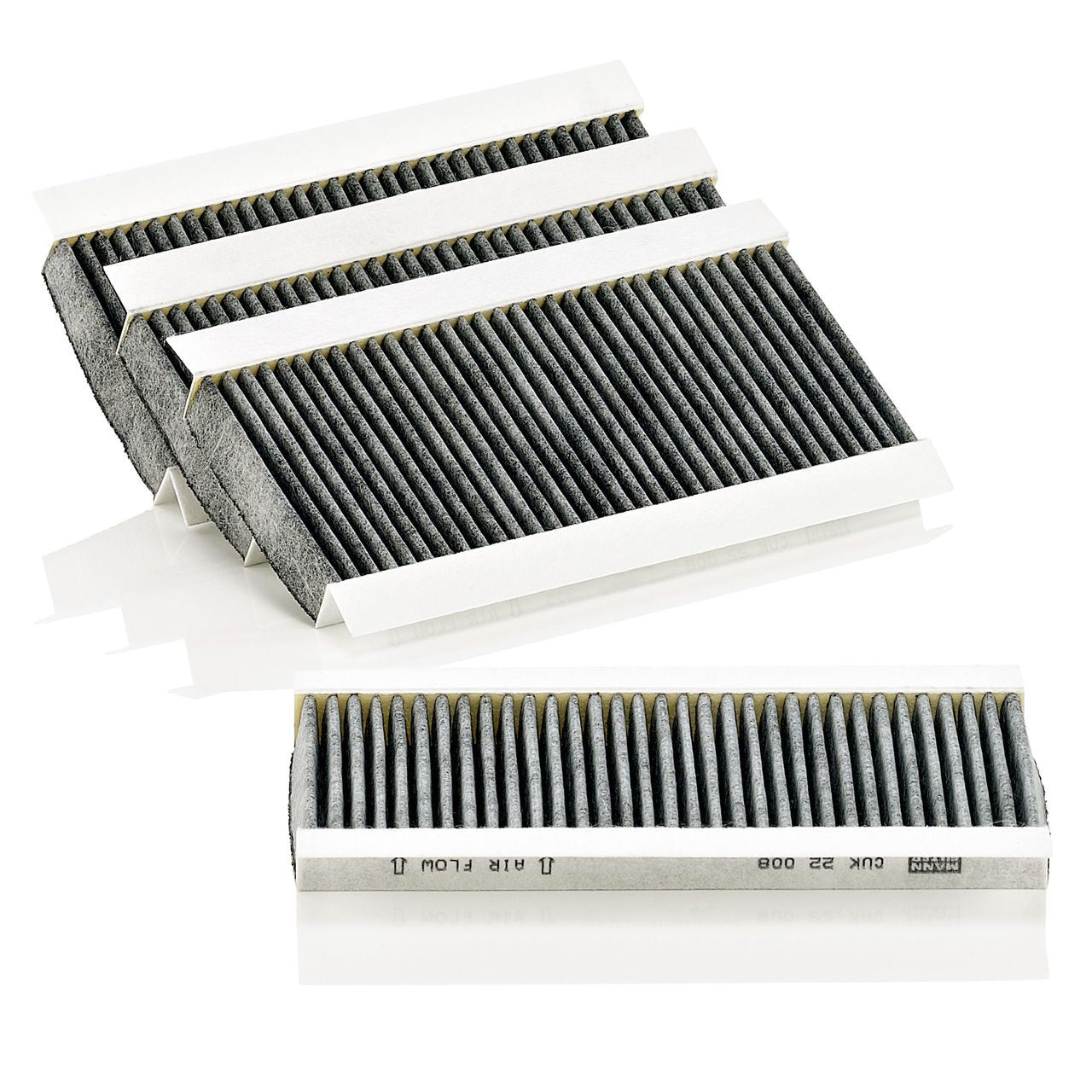High-quality MANN-FILTER cabin filters with active carbon - nearly 100% protection from particles like pollen, diesel soot & tyre abrasion / Additional protection from harmful gases & unpleasant odour. The trated highly-effective activated carbon gives protection against harmful gases such as ozone, nitrogen oxide or sulphur dioxide and eliminates unpleasant odours during the entire service interval.