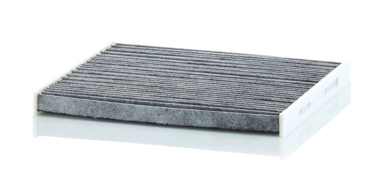 High-quality MANN-FILTER cabin filters with active carbon - nearly 100% protection from particles like pollen, diesel soot & tyre abrasion / Additional protection from harmful gases & unpleasant odour. The trated highly-effective activated carbon gives protection against harmful gases such as ozone, nitrogen oxide or sulphur dioxide and eliminates unpleasant odours during the entire service interval.