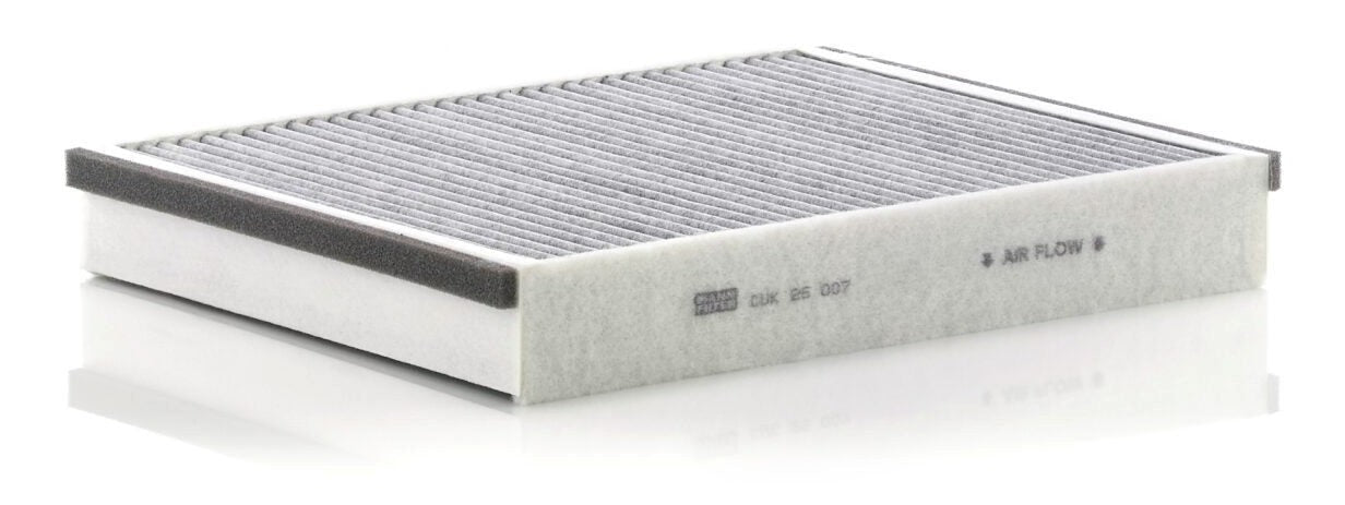 High-quality MANN-FILTER cabin filters with active carbon - nearly 100% protection from particles like pollen, diesel soot & tyre abrasion / Additional protection from harmful gases & unpleasant odour. The trated highly-effective activated carbon gives protection against harmful gases such as ozone, nitrogen oxide or sulphur dioxide and eliminates unpleasant odours during the entire service interval.