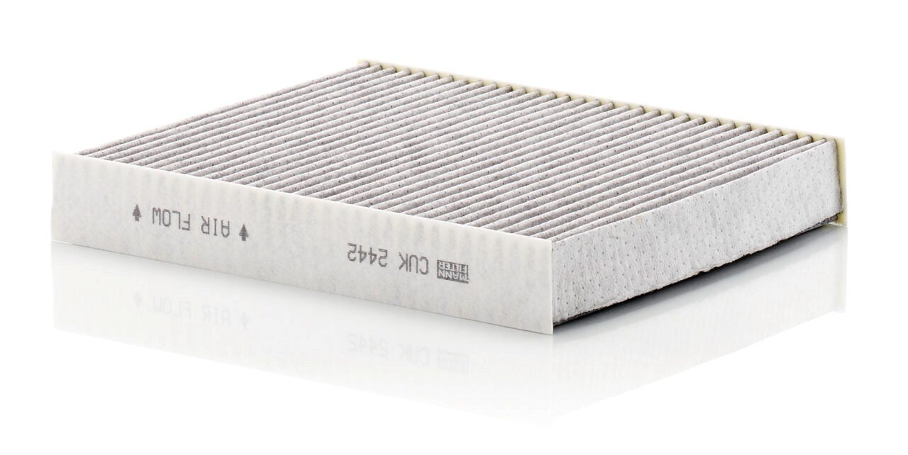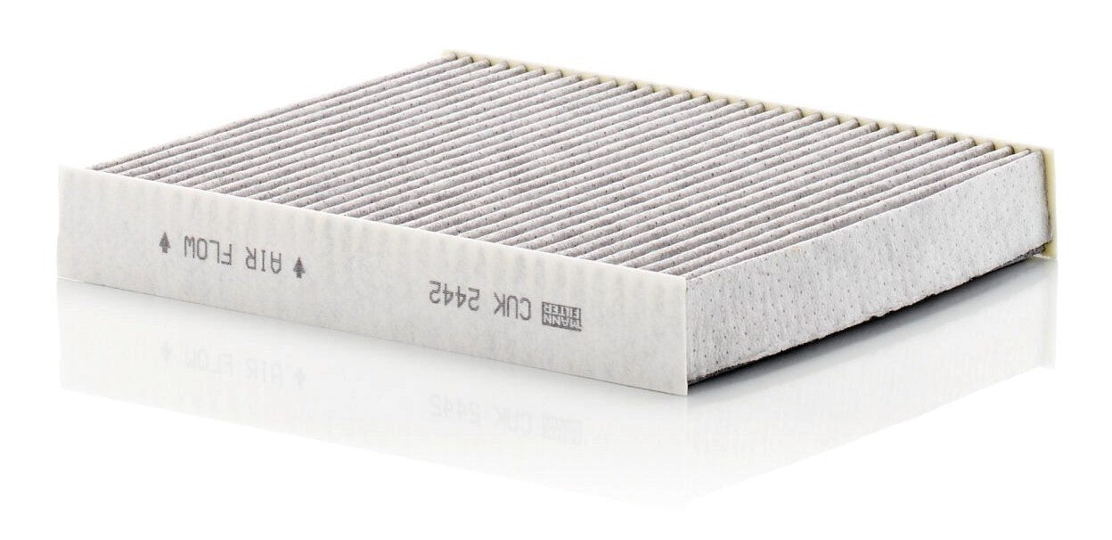 High-quality MANN-FILTER cabin filters with active carbon - nearly 100% protection from particles like pollen, diesel soot & tyre abrasion / Additional protection from harmful gases & unpleasant odour. The trated highly-effective activated carbon gives protection against harmful gases such as ozone, nitrogen oxide or sulphur dioxide and eliminates unpleasant odours during the entire service interval.