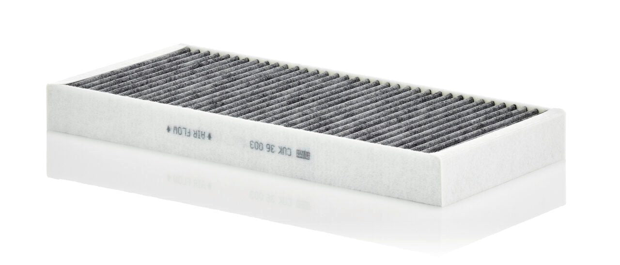 High-quality MANN-FILTER cabin filters with active carbon - nearly 100% protection from particles like pollen, diesel soot & tyre abrasion / Additional protection from harmful gases & unpleasant odour. The trated highly-effective activated carbon gives protection against harmful gases such as ozone, nitrogen oxide or sulphur dioxide and eliminates unpleasant odours during the entire service interval.