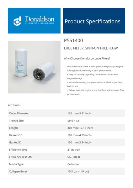 Why Choose Donaldson Lube Filters?Donaldson lube filters are designed to keep today’s engine lube systems functioning at peak performance.