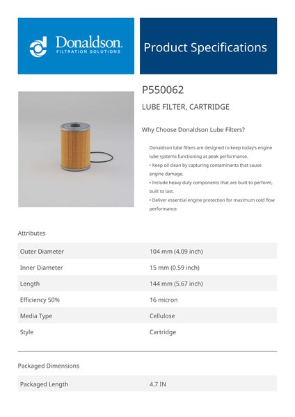 Why Choose Donaldson Lube Filters?Donaldson lube filters are designed to keep today’s engine lube systems functioning at peak performance.