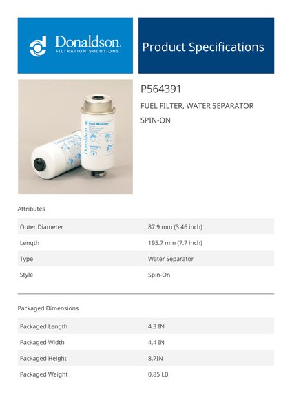 | Style | Fuel Filter, Water Separator Spin-On |