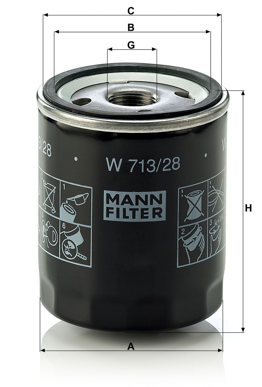 Mann Filter W 713/28 Oil Filter | Replaces the Fram PH4952