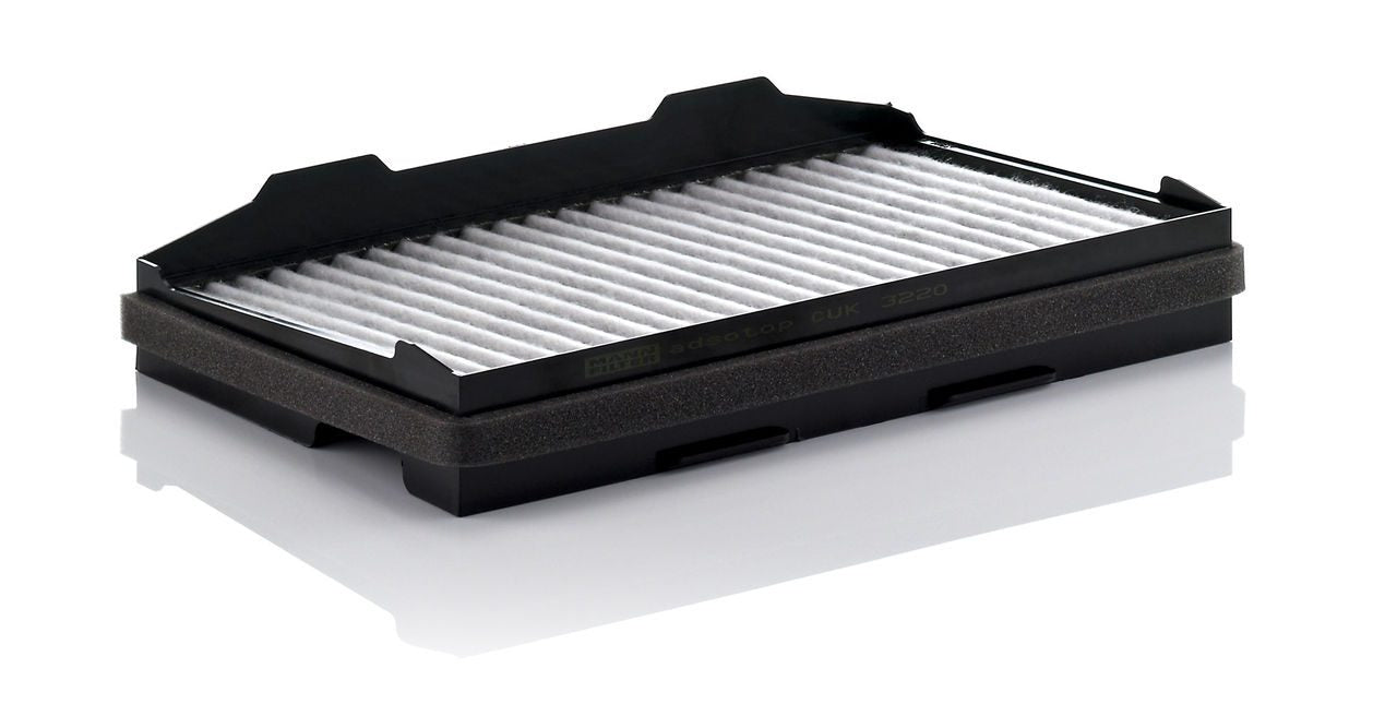 High-quality MANN-FILTER cabin filters with active carbon - nearly 100% protection from particles like pollen, diesel soot & tyre abrasion / Additional protection from harmful gases & unpleasant odour. The trated highly-effective activated carbon gives protection against harmful gases such as ozone, nitrogen oxide or sulphur dioxide and eliminates unpleasant odours during the entire service interval.